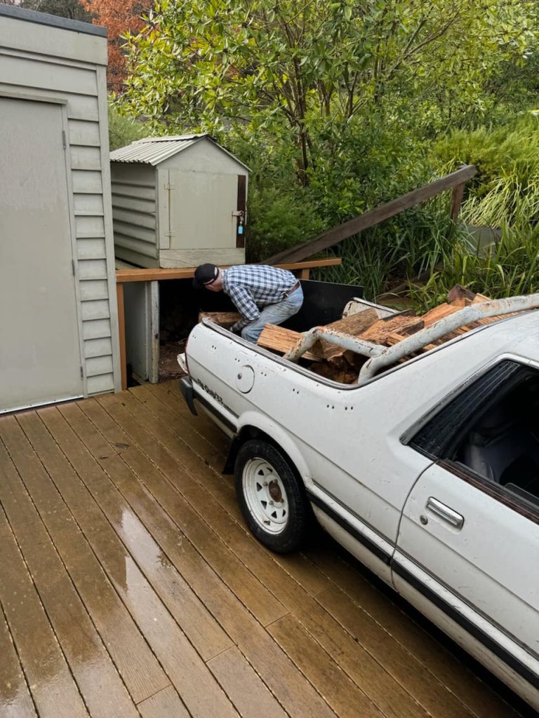 Alvin and Kevin delivered wood to the Visitors Information Centre this morning.
